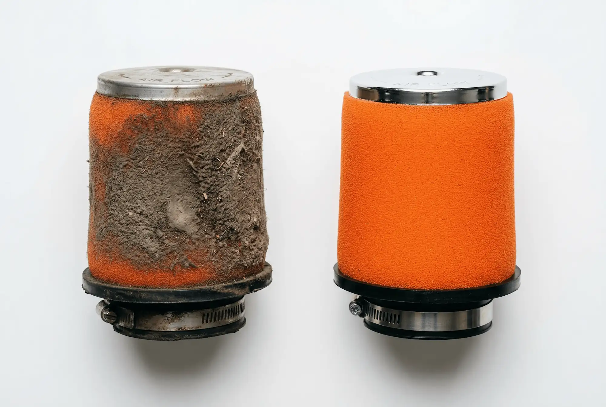 • Reduced power output — a clogged filter restricts airflow, starving the engine of oxygen. A heavily restricted filter can cost you 5–10% of your usable power. On a 50hp commuter bike, that’s 3–5 horsepower you’re leaving on the table.